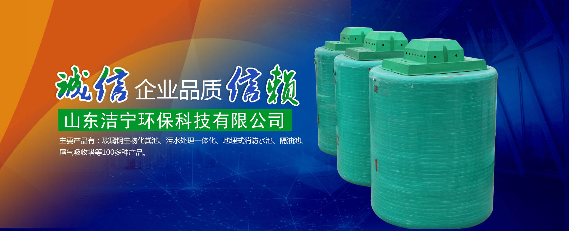 本公司主要生產的產品有:玻璃鋼生物化糞池、污水處理一體化、地埋式消防水池、隔油池、尾氣吸收塔等100多種產品,產品覆蓋20多個省市自治區(qū)。